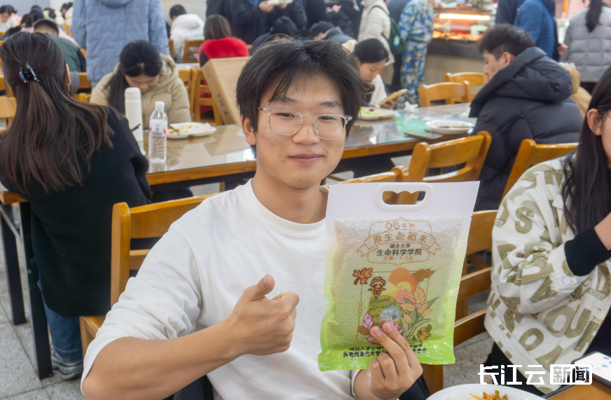 此次端上餐桌的稻米,共计150余斤,均来自该校在武汉长江新区的多倍体水稻基地,是湖大生科院多倍体水稻团队的科研成果,也是该院加强大学生劳动教育,组织学生历经5个月全程参与播种、收割、晾晒、脱粒、碾米等工序的成果。