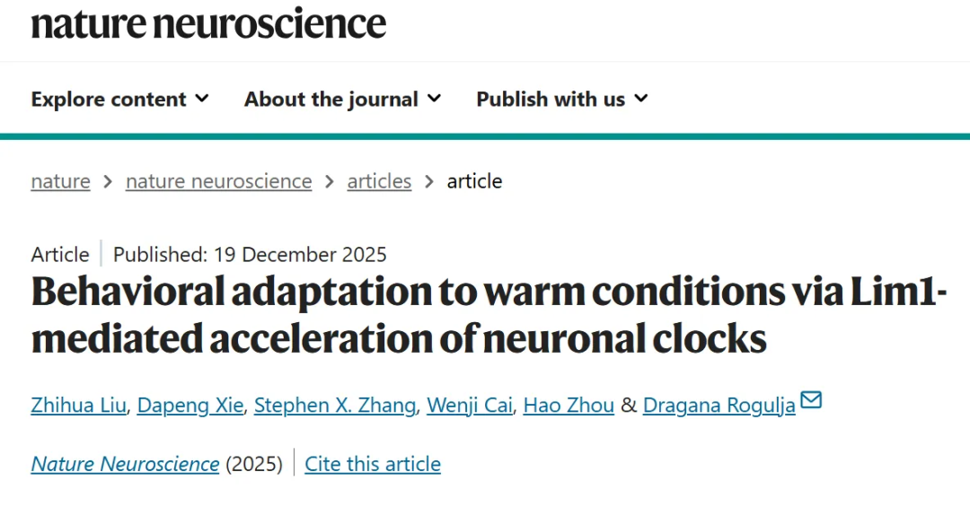 湖北日报讯(记者李玉麟、通讯员李爱涛)长久以来,科学家认为生物钟如同一台精密的瑞士手表,无论寒暑都应保持稳定的24小时节律。然而,湖北大学生命科学学院刘志华团队与哈佛医学院合作,在神经科学顶级期刊《自然-神经科学》(Nature Neuroscience)发表的最新研究,颠覆了这一认知:面对高温,大脑会主动让生物钟“提速”,这不是故障,而是生存智慧。这是该校首篇发表于该国际顶级期刊的论文,标志着湖大在脑科学研究领域实现重要突破。