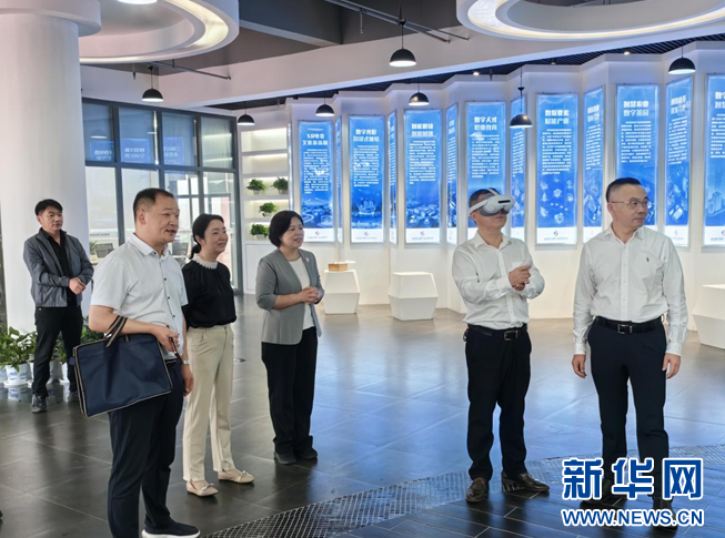 图为出席活动的领导和嘉宾参观展厅并体验湖北大学设计开发的VR产品。新华网发